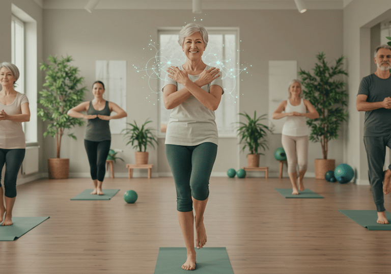 Seated exercises enhancing mobility, posture, and cognitive clarity — gentle yet effective for seniors or anyone seeking mindful movement.