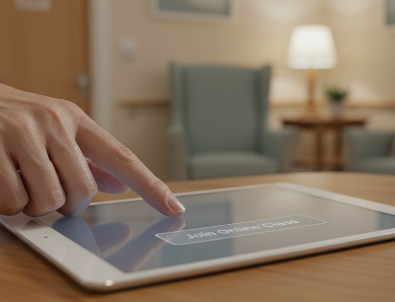 Accessible from anywhere, live or in recordings — seniors can participate safely from home or group viewing rooms.